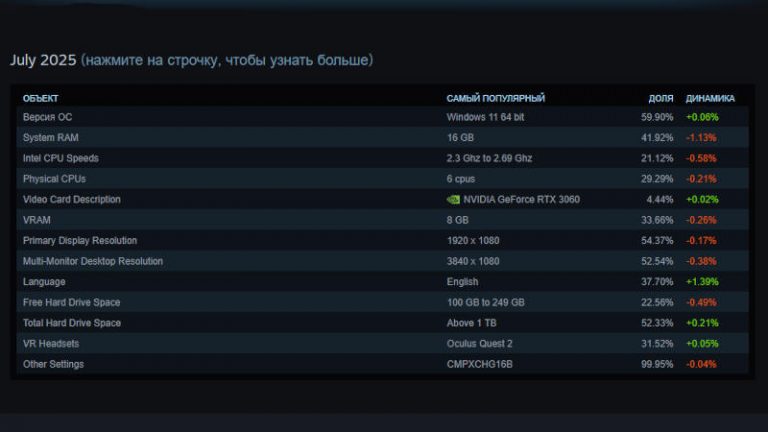 Новая статистика Steam за июль 2024 года показывает значительные изменения на рынке игрового оборудования и программного обеспечения. Видеокарты серии Nvidia…
